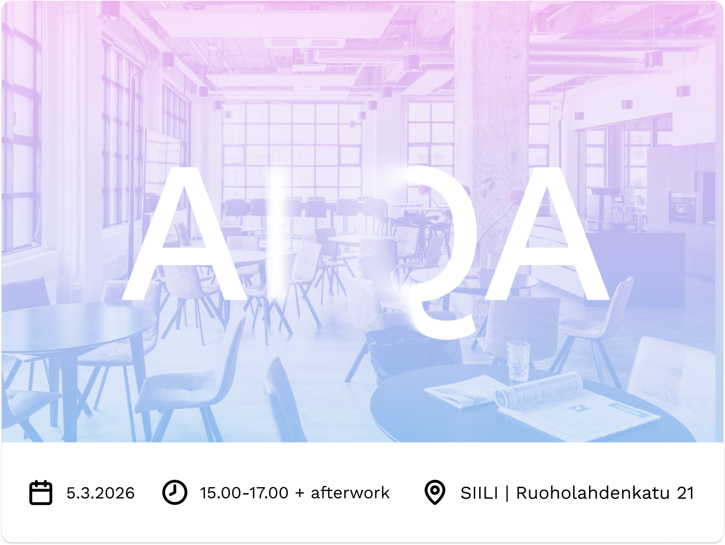 Tapahtumapaikkana toimii emoyhtiömme Siilin toimisto, joka sijaitsee keskeisellä paikalla osoitteessa Ruoholahdenkatu 21.