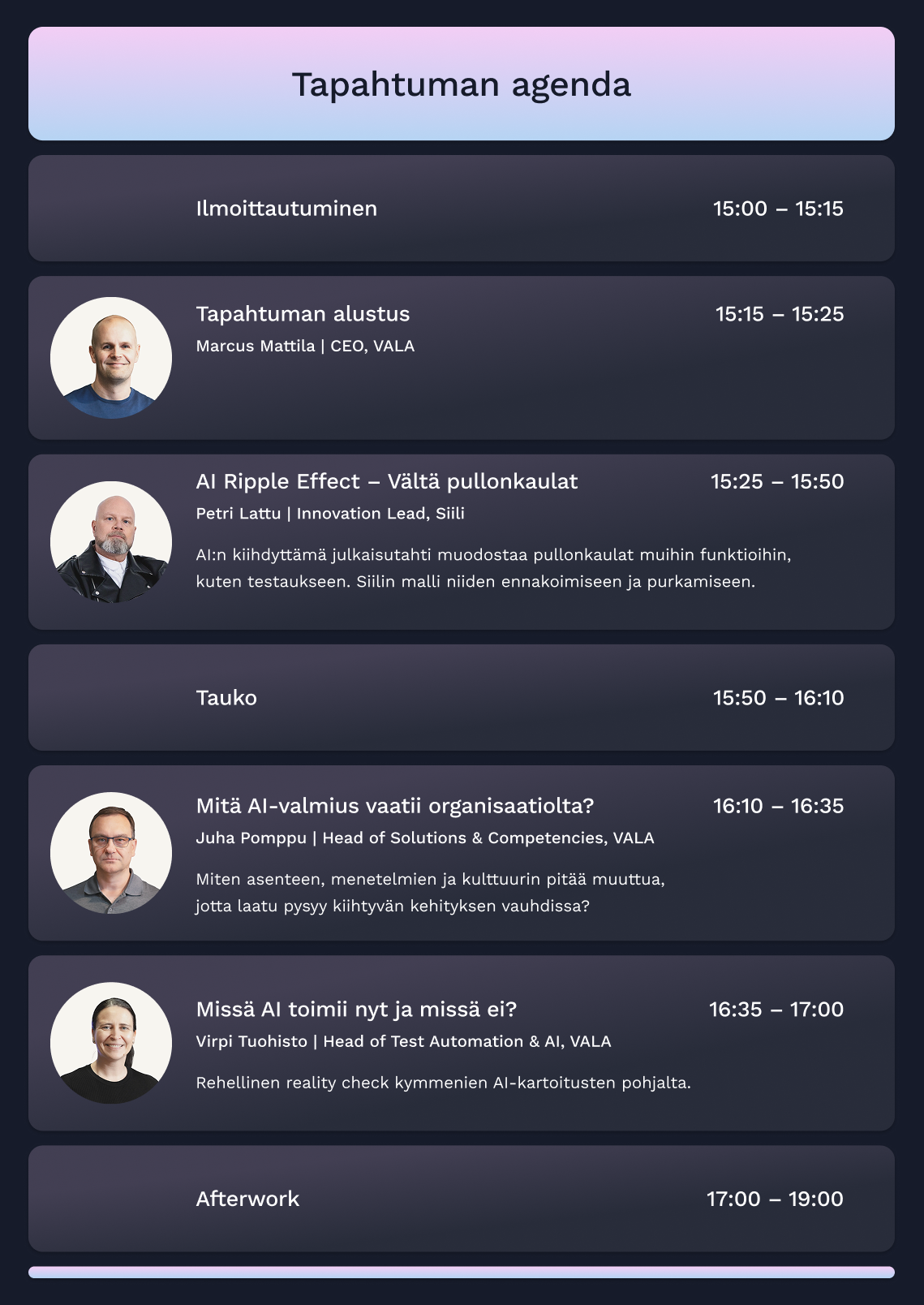 Tervetuloa VALAn asiantuntijatapahtumaan ja afterworkeille 5.3.2026 klo 15:00–19:00.