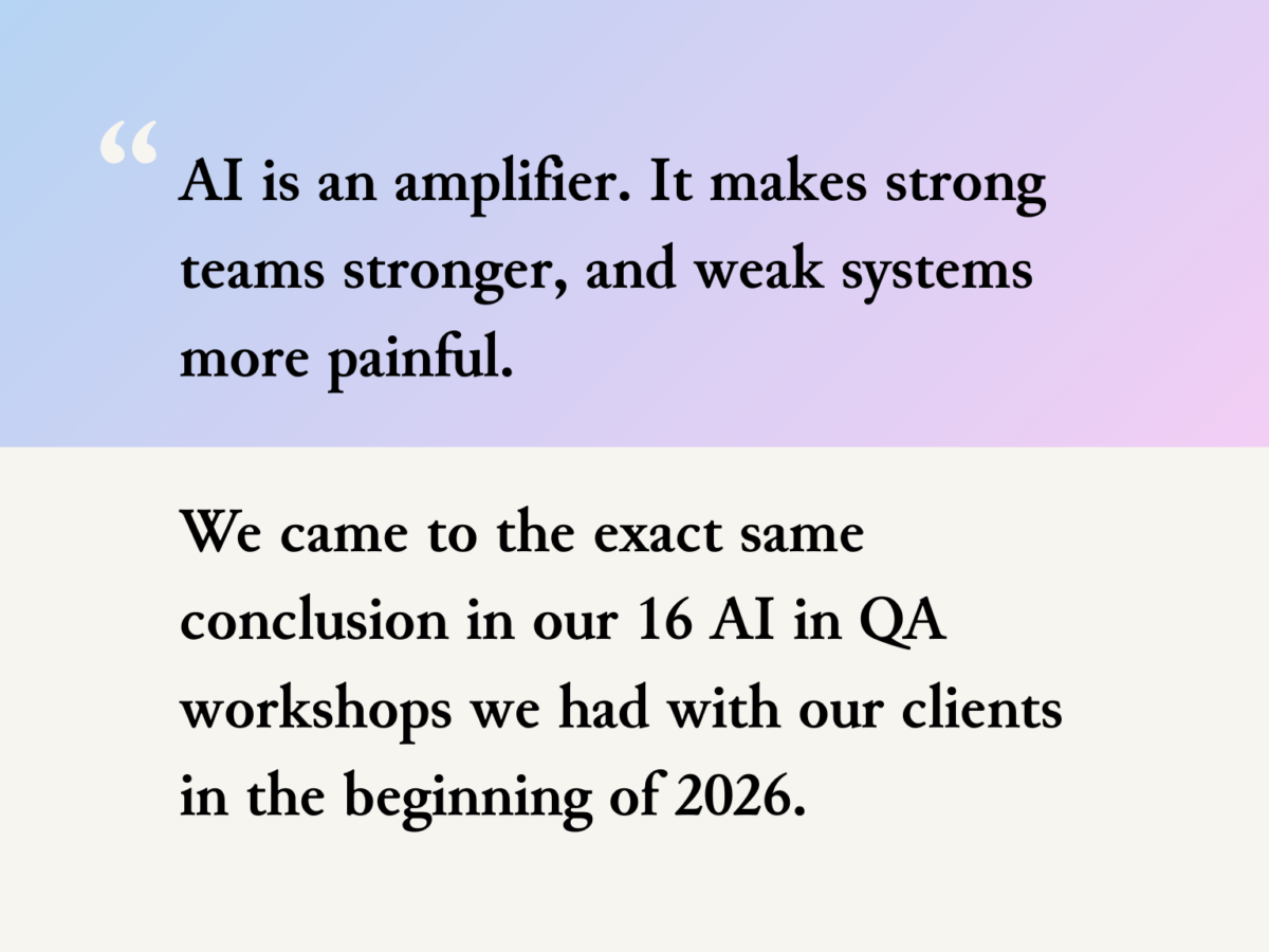 Many “software testing” tasks include judgment, context, and communication. AI can support them, but it does not remove the need for a human to decide what matters. - The gap is a leadership problem, not a people problem.
